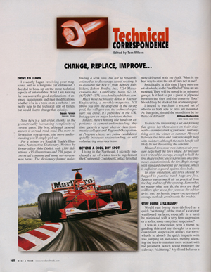 former editor John Dinkel, with 1300 definitions, 435 illustrations and 250 pages, it covers all common and some not-so-common terms. The dictionary format makes finding a term easy, but not so researchoriented as to discourage casual reading. It is available for $19.95 from Bentley Publishers, 1734 Massachusetts Ave., Cambridge, Mass. 02138, (617) 547-4170, www.BentleyPublishers.com