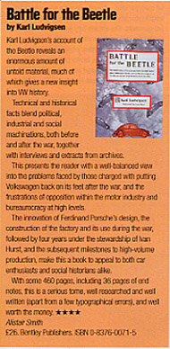 Karl Ludvigsen's account of the Beetle reveals an enormous amount of untold material, much of which gives a new insight into VW history.